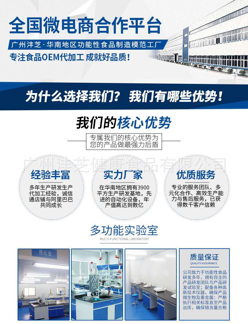 廣州灃芝致力于打造傳播健康與美麗,是集科研開發(fā)、產(chǎn)品制造、市場銷售、委托加工的高新科技綜合企業(yè)。 公司致力于功能性食品研發(fā)近10年,擁有自主的產(chǎn)品研發(fā)團(tuán)隊與產(chǎn)品研發(fā)試驗室;在華南地區(qū)建立起了一家占地面積3900平方米、已獲得A級食品SC認(rèn)證的高新技術(shù)生產(chǎn)工廠企業(yè)。現(xiàn)擁有片劑、粉劑、顆粒劑、口服液等十一條生產(chǎn)線,已經(jīng)報批了近200個生產(chǎn)備案批文。生產(chǎn)六大劑型的功能性食品生產(chǎn)線60余臺套及配套設(shè)備,達(dá)到年產(chǎn)口服液12000萬支、片劑10億片、沖劑及粉類產(chǎn)品500萬盒(罐)的雄厚生產(chǎn)實力。