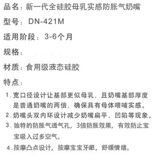 本品采用高級食品級矽膠(Liquid Silicone)制成,無毒、無味、耐高溫120℃可消毒、極好韌性、不易破、更耐用。本品對嬰兒牙床的發(fā)育和牙齦的保護有特殊效果。能促進嬰兒牙齒的正常發(fā)育及臉部肌肉運動。