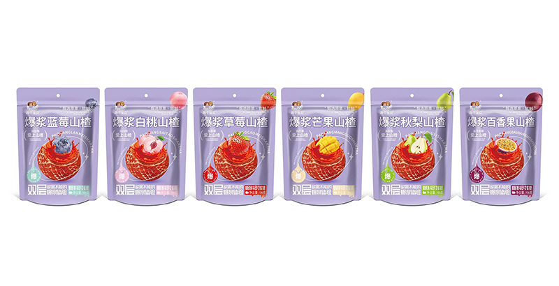 兩個(gè)寶貝爆漿山楂系列,有白桃、百香果、草莓、藍(lán)莓、芒果、秋梨,六種口味,甄選原果,鮮制而成。外面包裹著一層山楂果,內(nèi)芯搭配水果,果漿注心,輕輕咬一口就會(huì)爆漿。