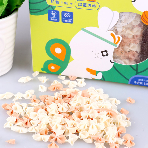 優(yōu)貝兔小蔬菜蝴蝶面精選天然優(yōu)質(zhì)小麥粉為主要原料,科學(xué)配比成長所需的多種營養(yǎng)元素,添加不同的鮮榨果蔬汁,采用獨(dú)特的蒸面技術(shù)工藝制作而成,精心設(shè)計(jì)成蝴蝶樣式,更能增加食欲,有胡蘿卜味+紫薯味、胡蘿卜味+雞蛋原味、雞蛋原味+菠菜味、雞蛋原味+菠菜味+胡蘿卜味四種不同口味單品,優(yōu)質(zhì)健康,營養(yǎng)豐富,呵護(hù)健康!