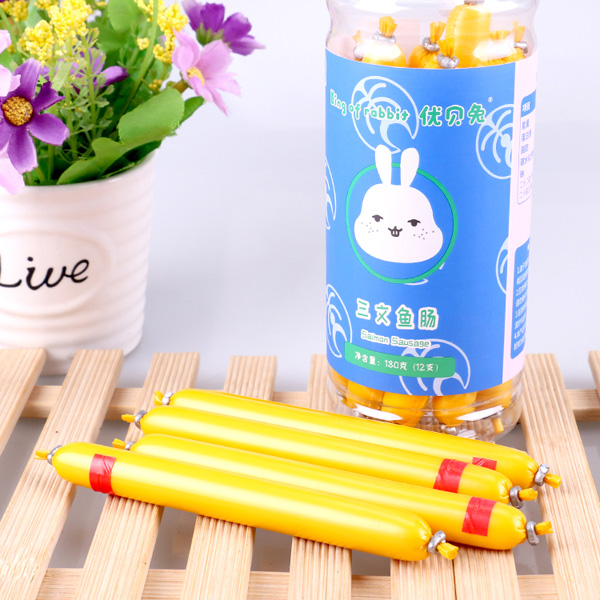 優(yōu)貝兔魚腸系列甄選食材,以優(yōu)質(zhì)三文魚、深海鱈魚、蝦等為主要原料,肉質(zhì)鮮嫩,營養(yǎng)豐富,不添加多余添加劑,口感柔軟,易于吸收,清口不膩。有鱈魚腸、三文魚場、蝦腸三種不同的單品,特別采用長條獨立包裝,易于小手抓取,鍛煉抓握能力。
