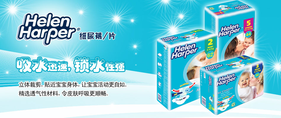Helen Harper海倫哈伯品牌誕生于上世紀50年代的德國,是源自德國純正血統(tǒng)制造的優(yōu)秀產(chǎn)品,同時也是歐洲最著名的一次性衛(wèi)生用品制造商Ontex集團旗下的主要品牌之一。海倫是女孩,哈伯是男孩,我們出生在德國的迪生(Diessen),從我們出生的那一天起,我們就擔負著關(guān)注母嬰衛(wèi)生護理的使命。Ontex集團是一家有著半個多世紀歷史,集設(shè)計、研發(fā)、生產(chǎn)、銷售為一體的歐洲大型醫(yī)療保健企業(yè)集團,總部位于比利時,在德國、法國、西班牙、意大利、英國、捷克、波蘭、及匈牙利和土耳其等國都有其生產(chǎn)、研發(fā)及銷售中心。其產(chǎn)品涉及婦女衛(wèi)生用品、嬰幼兒衛(wèi)生用品、嬰幼兒護理用品、成人衛(wèi)生用品等領(lǐng)域。Ontex集團在全球擁有12家大型生產(chǎn)制造企業(yè)夜以繼日的為世界40多個國家和地區(qū)供應品質(zhì)可靠的產(chǎn)品。Helen Harper則以600萬片/天的生產(chǎn)規(guī)模領(lǐng)軍歐洲一次性衛(wèi)生用品,在歐洲的Helen Harper被廣泛用于家庭、醫(yī)療機構(gòu)及各種老人康復醫(yī)療中心。