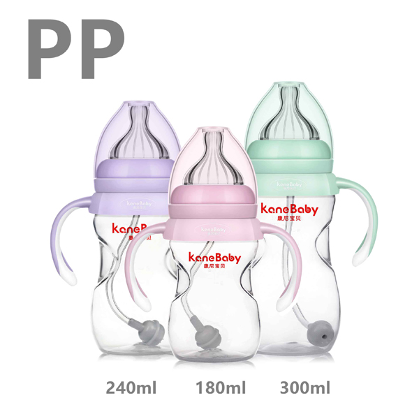 康尼寶貝寬口收腰形雙色手柄帶吸管PP奶瓶240ml產(chǎn)品展示